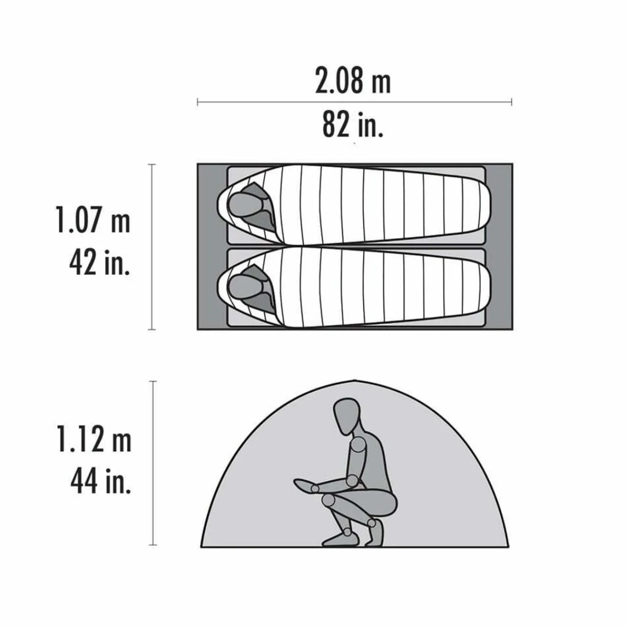- Interior peak height: 1.12m (44 in)