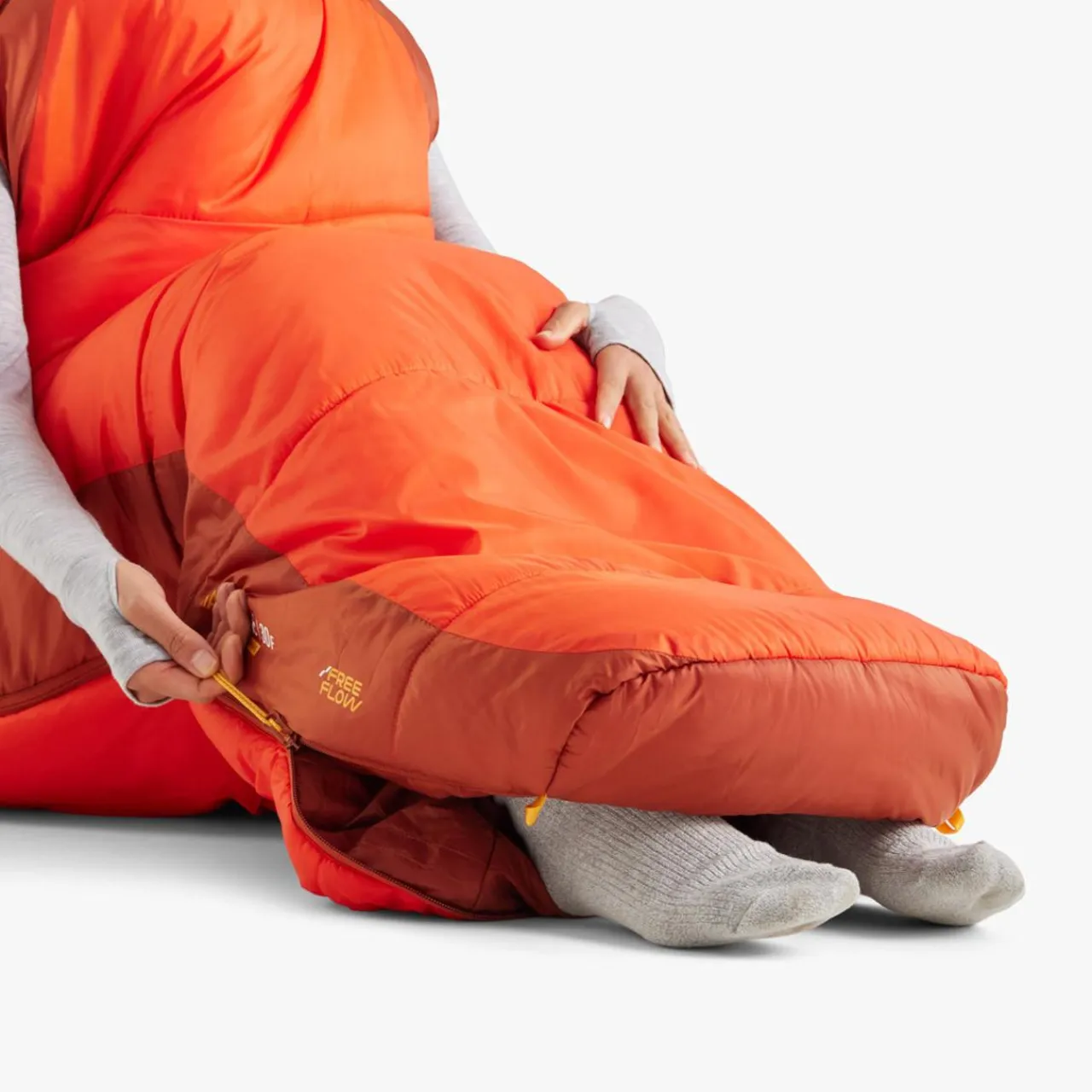 - Free Flow zipper system and relaxed mummy fit for comfort and performance across multiple seasons, varying weather and challenging environments.