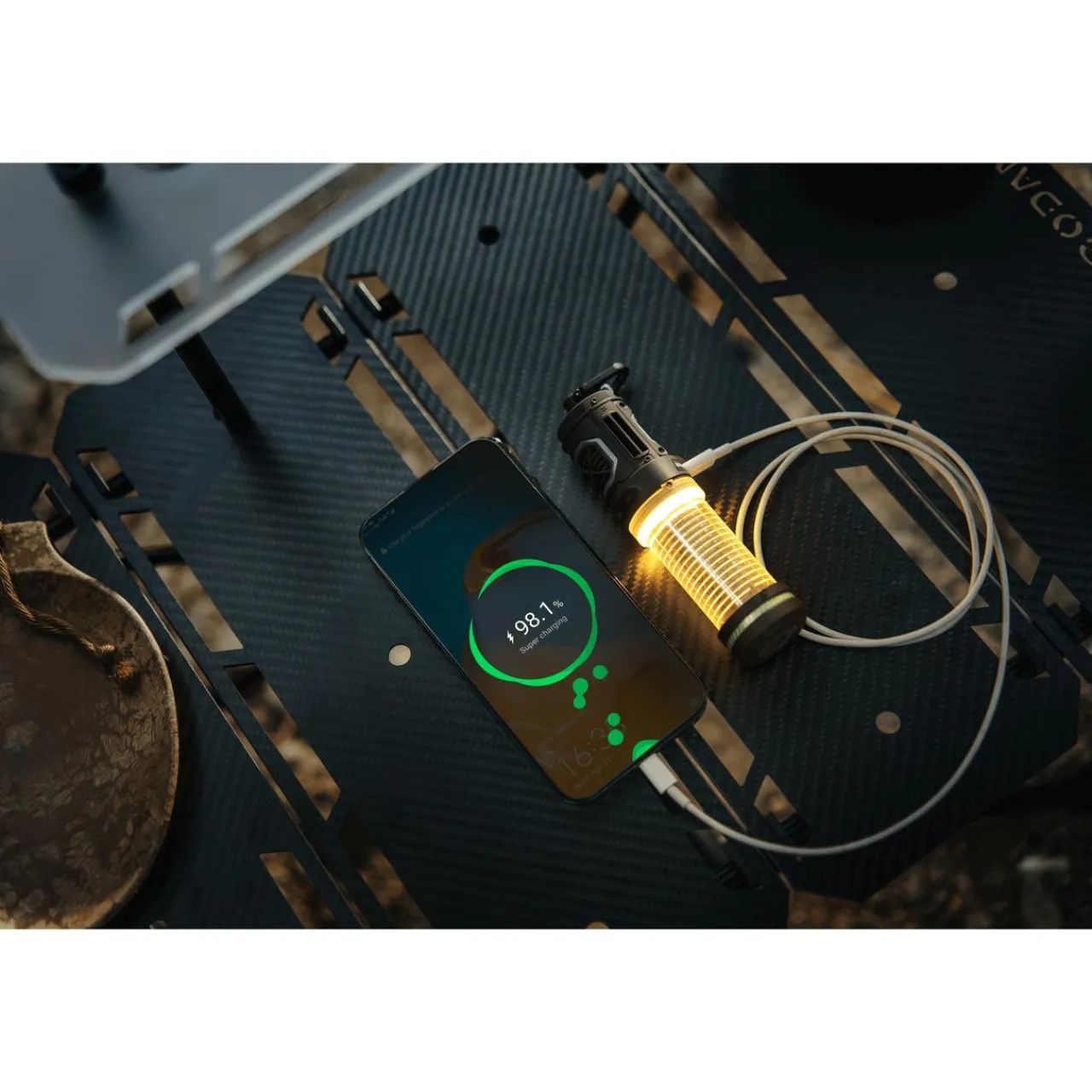 The camping light also features a stepless dimming function that lasts up to 9 hours at full brightness (400 lumens) and 50 hours at 50 lumens. It is lightweight enough to take on any backpacking adventure but also works well in campervans and base camp.