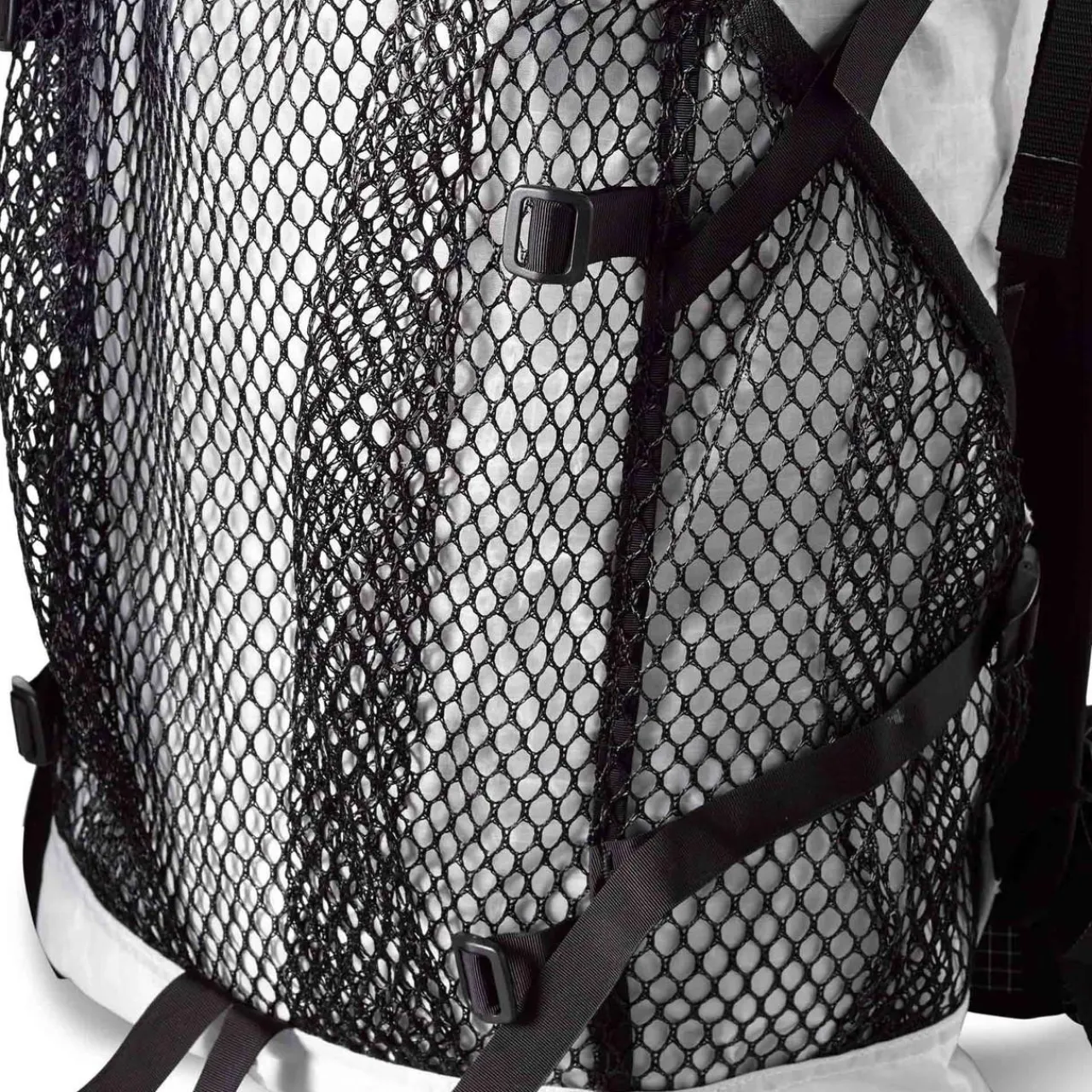 One of the pack’s standout features is its thoughtful storage options. The spacious main compartment is secured with a roll-top closure, allowing for flexible packing and a solid barrier against wet conditions. The three external mesh pockets are handy for storing damp or frequently accessed items like rain gear or a water filter. I’ve found these mesh pockets incredibly convenient on the trail, though it’s worth noting that they lack elasticity, so packing with care is necessary to avoid snags. There are accessory straps available that aid in compressing the pack.