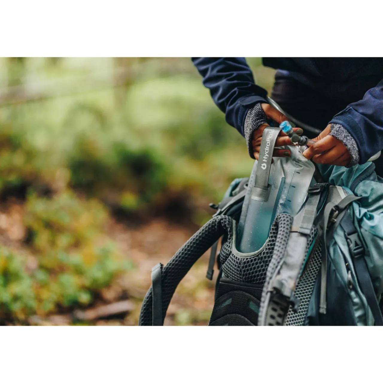 The main feature of this water bladder is its use of internal “baffles”, which stop water from sloshing about in the bladder; this helps reduce sway in your backpack, whether you are hiking, running or biking. The Contour has a durable handle which aids in carrying and filling the bladder, especially if you are collecting water on the trail. If you plan to use this bladder as a “dirty” water container, the bladder is “Plug-n-play” compatible, so you can attach the HydraPaks 28mm Inline filter seamlessly, which eliminates the need to process water; you can drink on the go or use this set up as a gravity filtration device.