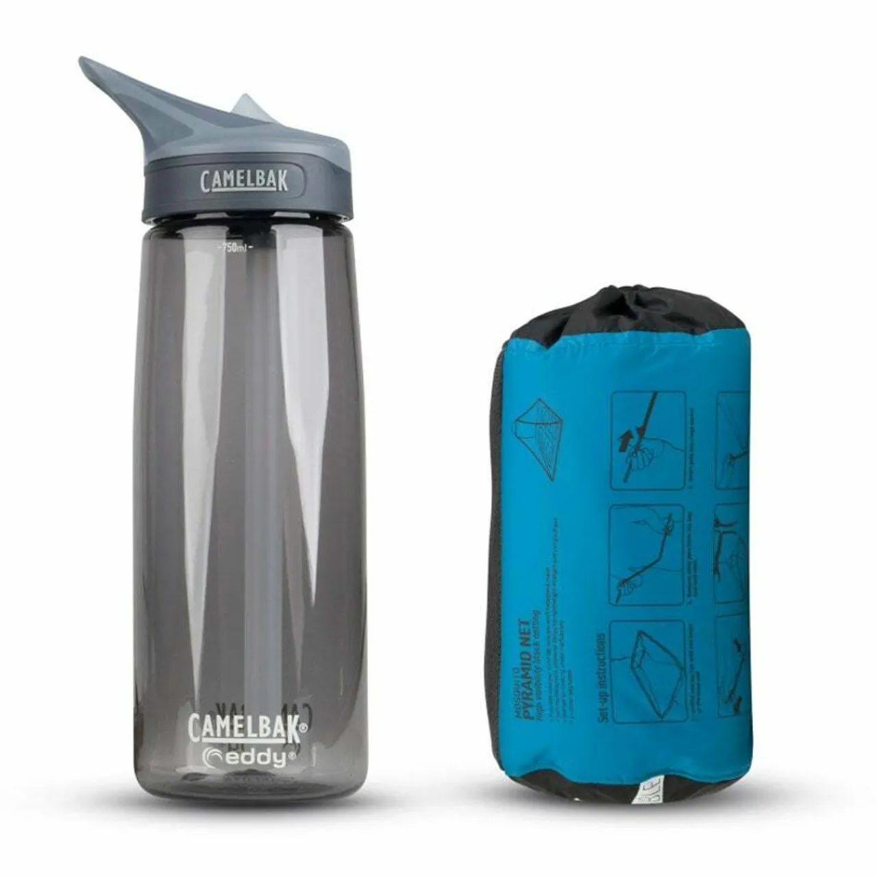 Our Mosquito Pyramid Net provides essential protection against mosquitoes and other bugs. The asymmetric shape means the apex of the pyramid is closer to the head end for more usable headroom. An overlapping flap at the base makes it easy to achieve a bug-proof seal against a floor or mattress while the 50D black mesh netting offers high visibility. Coloured tapes at each corner and a single suspension point ensure easy setup.