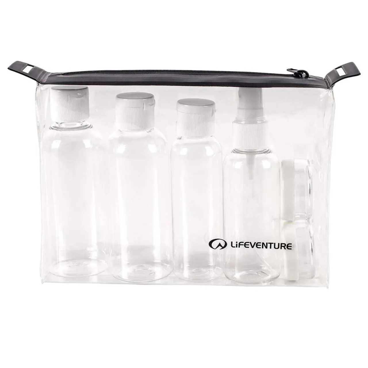 This handy set of travel bottles and pots are ideal for air travel. They come in an airport security compliant transparent storage bag.