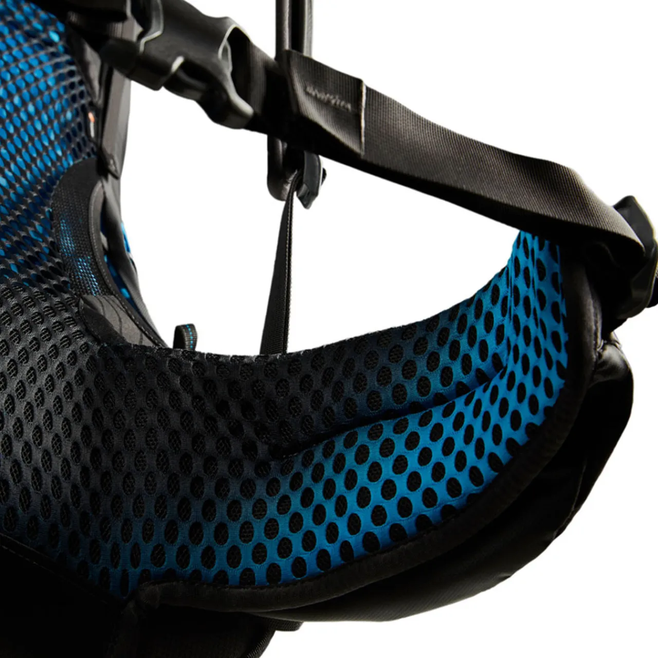 - Comfort wrap, breathable shoulder harness with sternum strap featuring integrated safety whistle and hydration clip