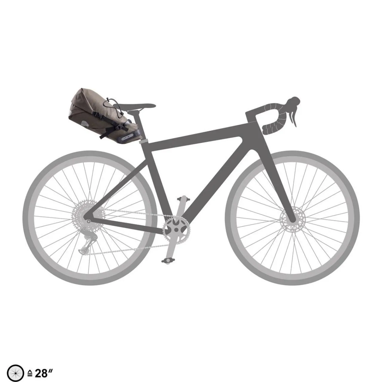 The ORTLIEB Seat-Pack 11L is compact and spacious at the same time. Offering a payload of 11 liters, the waterproof seat bag offers a lot of stowage space for sizeable items that are not so heavy such as clothing and personal care items. The inside and bottom of the bag are stiffened, which ensures stability even in bumpy terrain. Thanks to the roll closure, adjustable straps and an additional compression valve, you can reduce your loaded Seat-Pack to an extremely compact size.