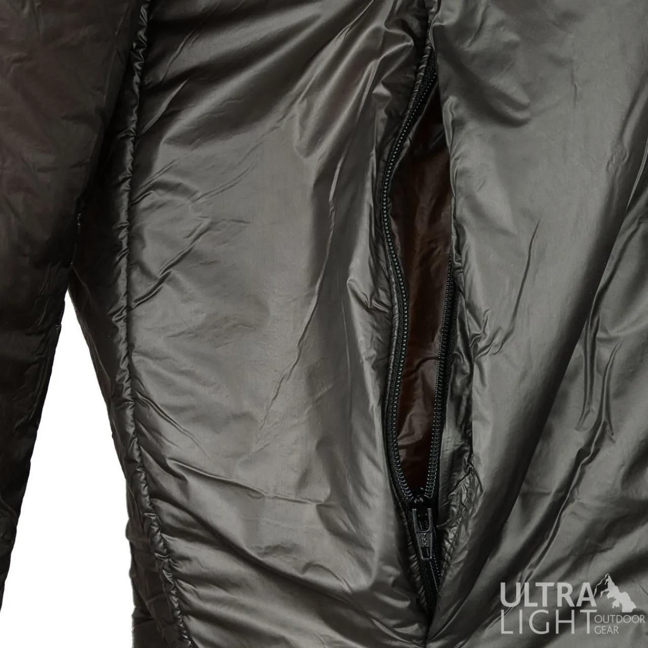 When needed, the hood adds significant warmth and wind resistance and can be cinched around the face with two ultralight shock cord facings. The elasticated hem and cuffs seal in warmth, and the hem can be adjusted with shock cord adjustment tucked away in the pockets. The hand-warming pockets are zippered so that you can store valuables inside worry-free.