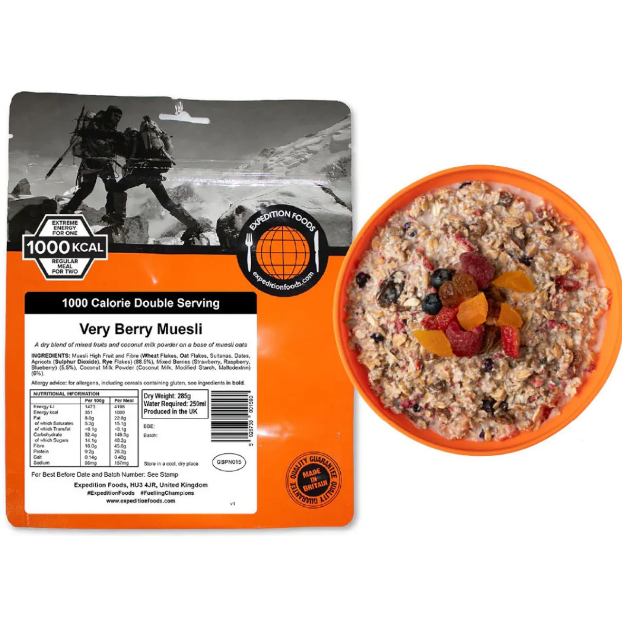 Traditional muesli and fibre mixed with sultanas, dates, apricots, strawberries, raspberries and blueberries. With coconut milk used as a replacement for traditional milk, this aptly named Very Berry Muesli is sure to please every health-conscious hiker or explorer on the planet. A sumptuous breakfast for vegans, vegetarians and everyone who enjoys a nutritious start to an active day. Enjoy from anywhere.