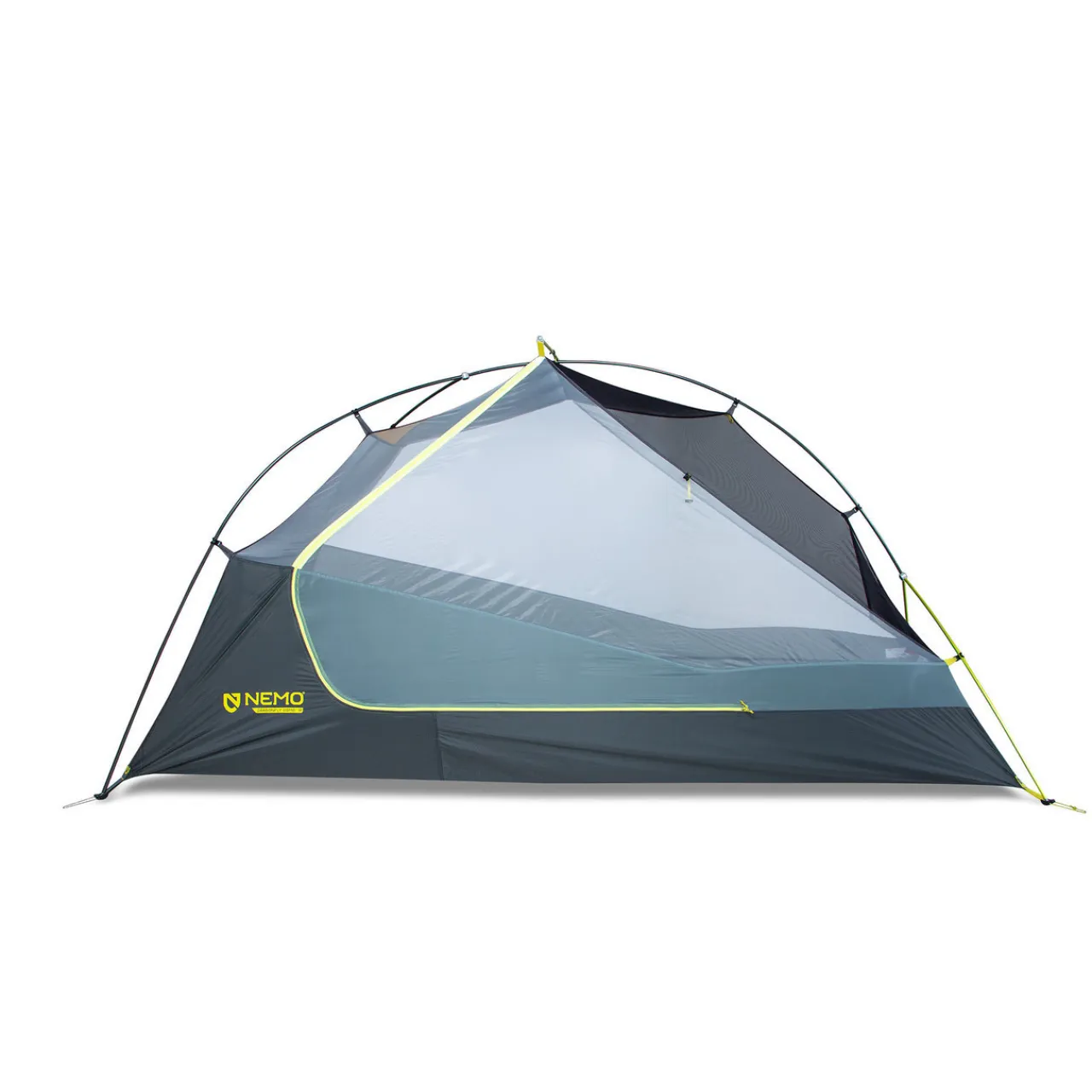Nemo’s Dragonfly OSMO Tent is One of the first in a new range of tents built with NEMO’s new OSMO™ fabric. Made from 100% recycled materials, free of any harmful PFCs or PFAS, this new poly-nylon maximizes performance without impacting the environment. Made from a weave of strong, lightweight nylon and, a dimensionally stable (doesn’t stretch) polyester, which also doesn’t absorb water. NEMO has created a new fabric, that holds its shape better, has improved water repellency, and also saves weight.