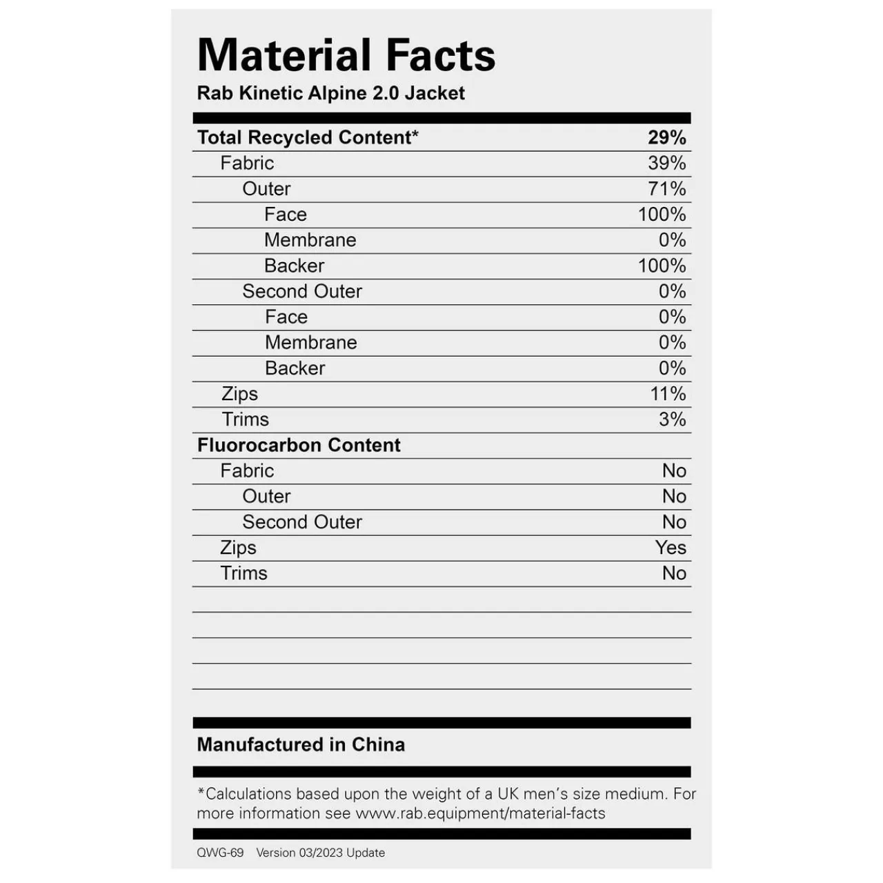 Rab’s Kinetic Alpine 2.0 Jacket has been updated with the inclusion of recycled face fabrics which have obvious environmental benefits with no impacts on the performance. It is still a super stretchy and comfortable waterproof jacket blurring the lines between hardshell and softshell with the innovative Proflex fabric. The jacket has the high breathability and soft feel of a ‘softshell’, but is totally waterproof with a hydrostatic head rating of 10,000mm, it has taped seams like a hardshell, perfectly good for all but the very worst conditions and you can expect to wear it as your hardshell.
