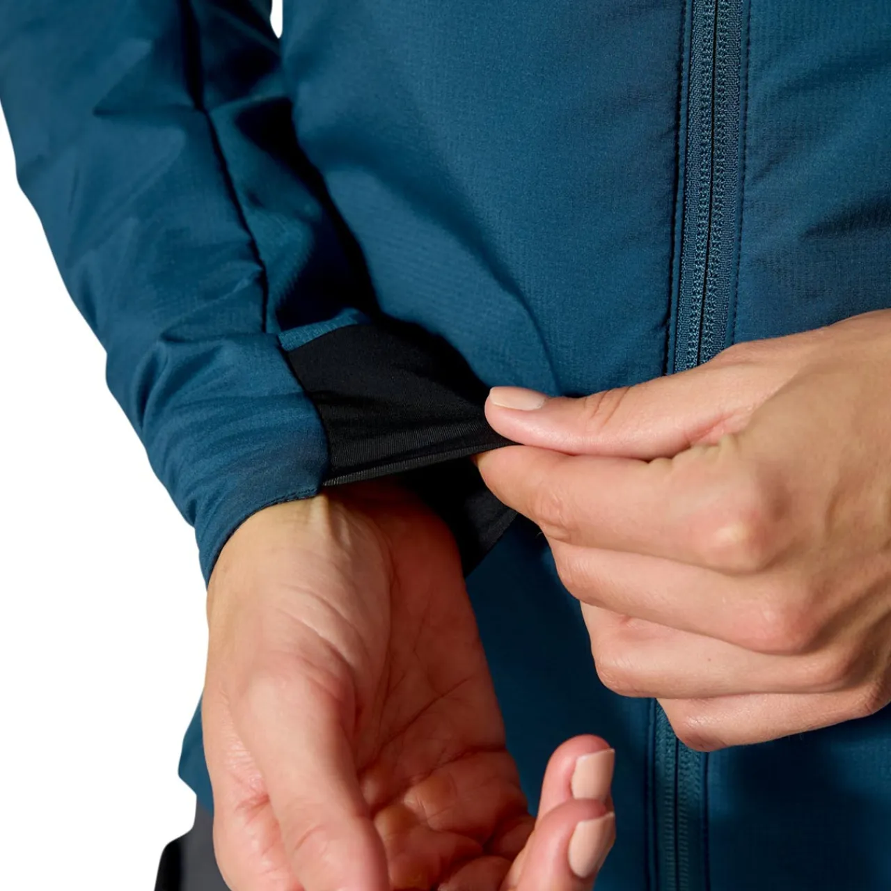 The fit is trim, ideal over a light base layer, though it might feel snug if you prefer thicker layers underneath. The outer Pertex Quantum Air strike a decent balance between breathability and wind protection, and the overall feel is supple and quiet. Two hand pockets are well placed, and one acts as a stuff sack with a harness loop.