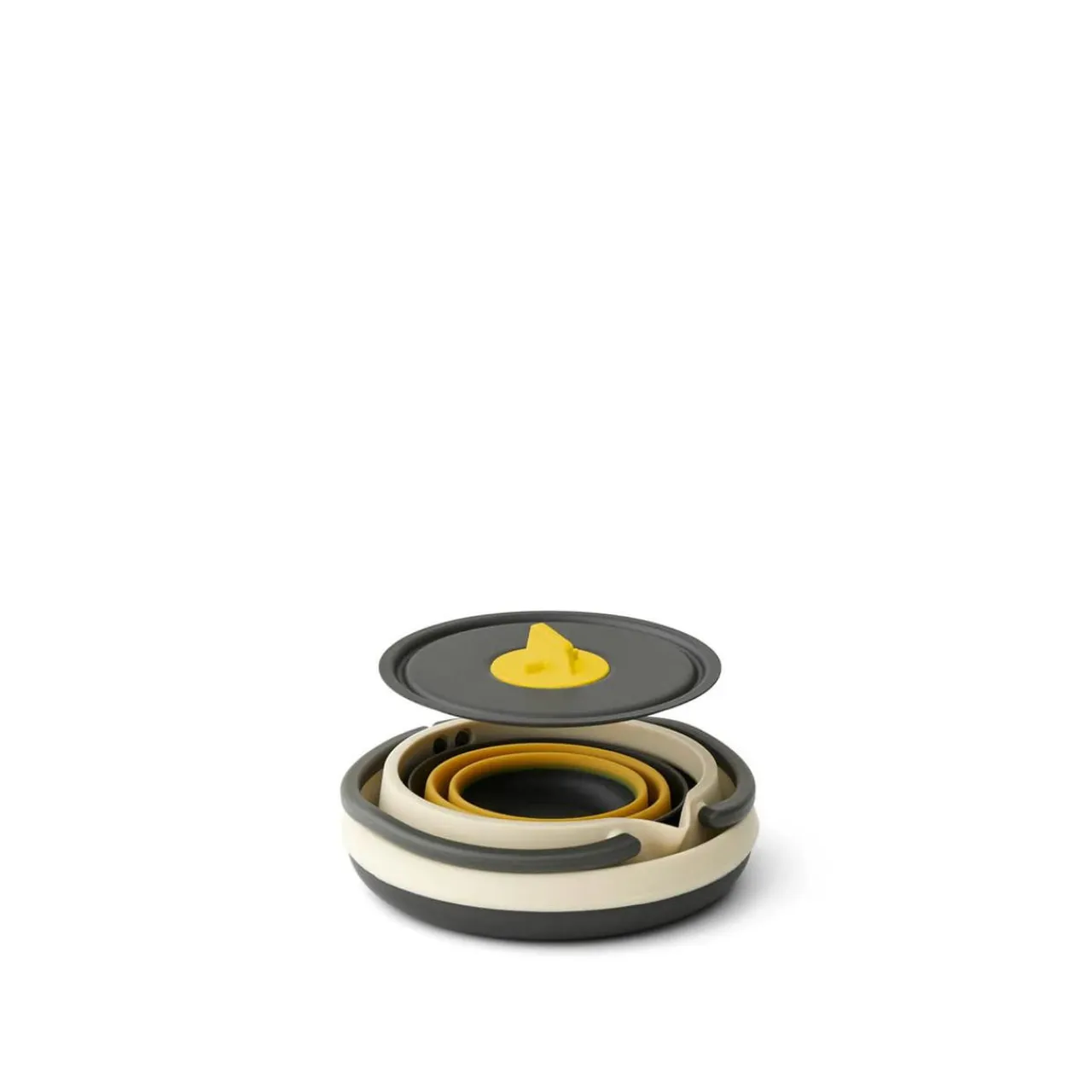The included mugs are light and flexible but reinforced with glass-reinforced nylon, giving them more structure and stability than most collapsible cups. They don’t crumple in the hand, even when full, making sipping or pouring more reliable. They’re also marked with volume indicators, which come in handy when measuring water for meals. The whole set nests together into a low-profile bundle that’s easy to stash even in a day pack.
