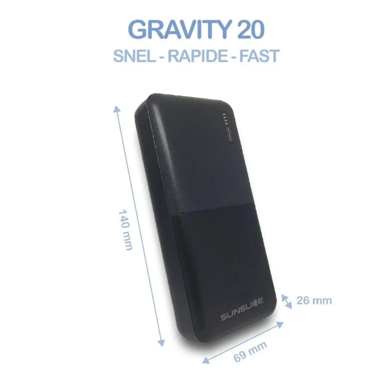 - COMPACT FORMAT – The small dimensions of the Gravity 20 makes it a perfect powerbank to carry in your pocket when travelling or going in the