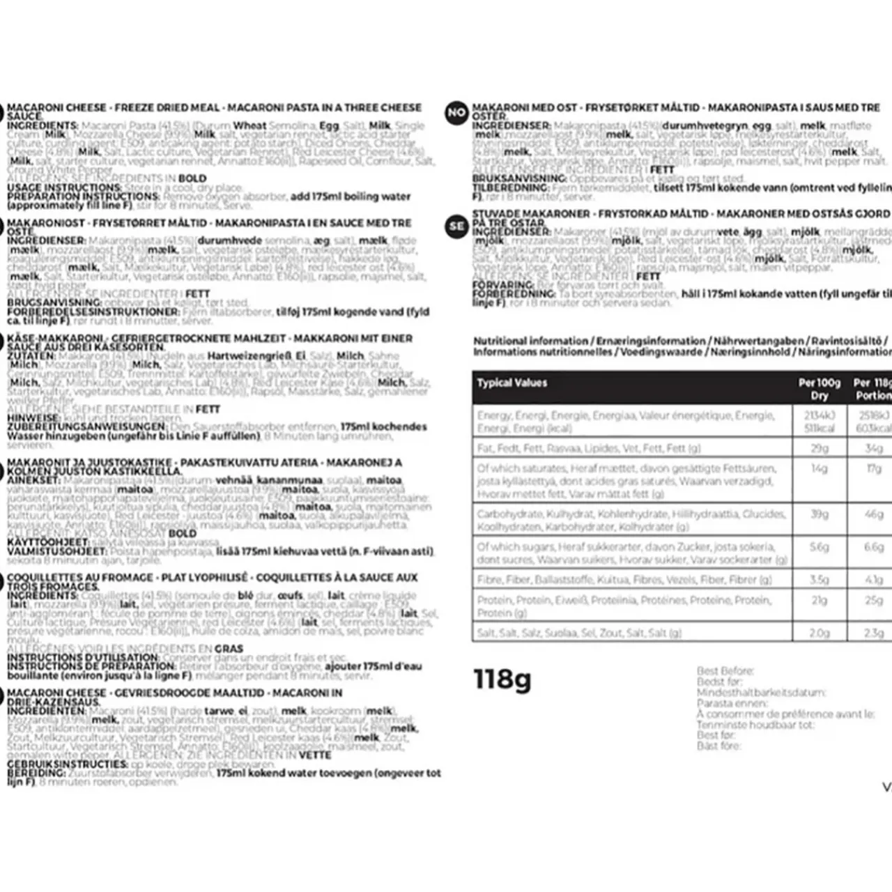Our Macaroni Cheese is expertly cooked before we freeze-dry it too. This means you can be sure to receive a delicious meal every time, because we take pride in the high quality and delicious taste in all our meals. Freeze-drying also makes our pouches particularly light too, which means they’re easily packed and stored on any expedition.