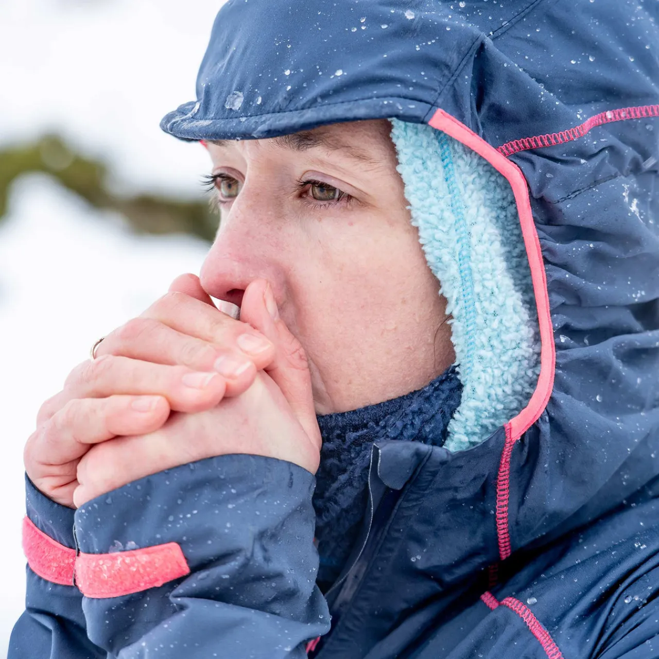 The adjustable hood with a wired peak offers excellent coverage, and the active cuffs with thumb loops keep the sleeves in place, which is especially helpful in cold or wet weather. The two large hand pockets are ideal for stashing maps or snacks on the go and add convenience without extra bulk. The reflective detailing adds safety in low-light conditions, a plus for early morning or evening adventures.