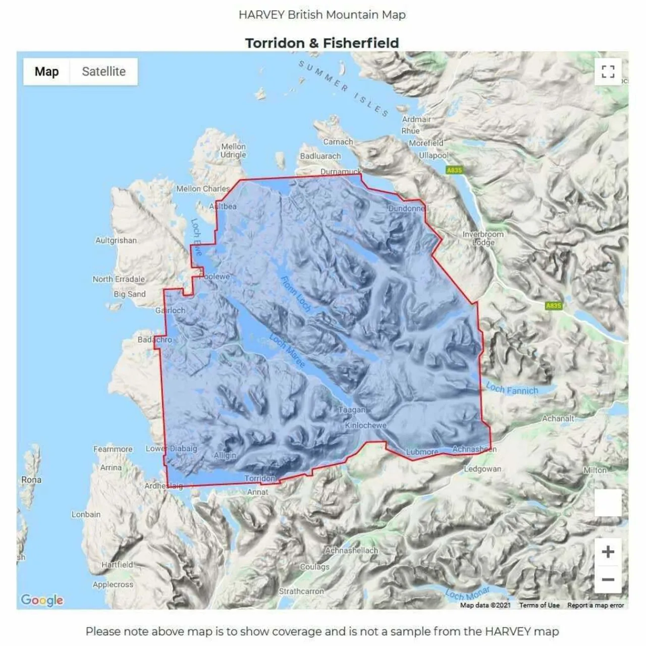 Detailed map of the giants of Torridon and the remote hills of Fisherfield on one sheet at 1:40,000 scale.