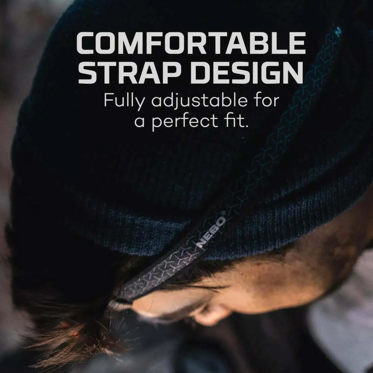 The Einstein™ 1000 by NEBO is a low-profile, compact 1,000 lumen headlamp with 5 light modes featuring flex power. Use the included rechargeable battery or 2 x CR123A batteries.