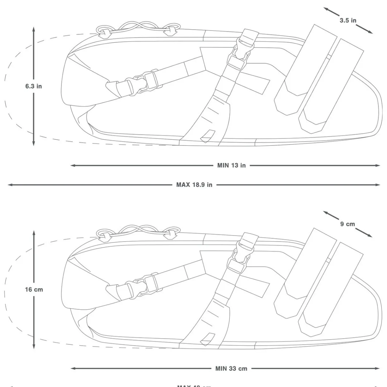 The Expedition Saddle Pack is available in three sizes for adventures long, short, and in-between. Additionally, the roll-down compression and closure system means the bag’s volume can be tailored precisely to fit a range of packing needs.