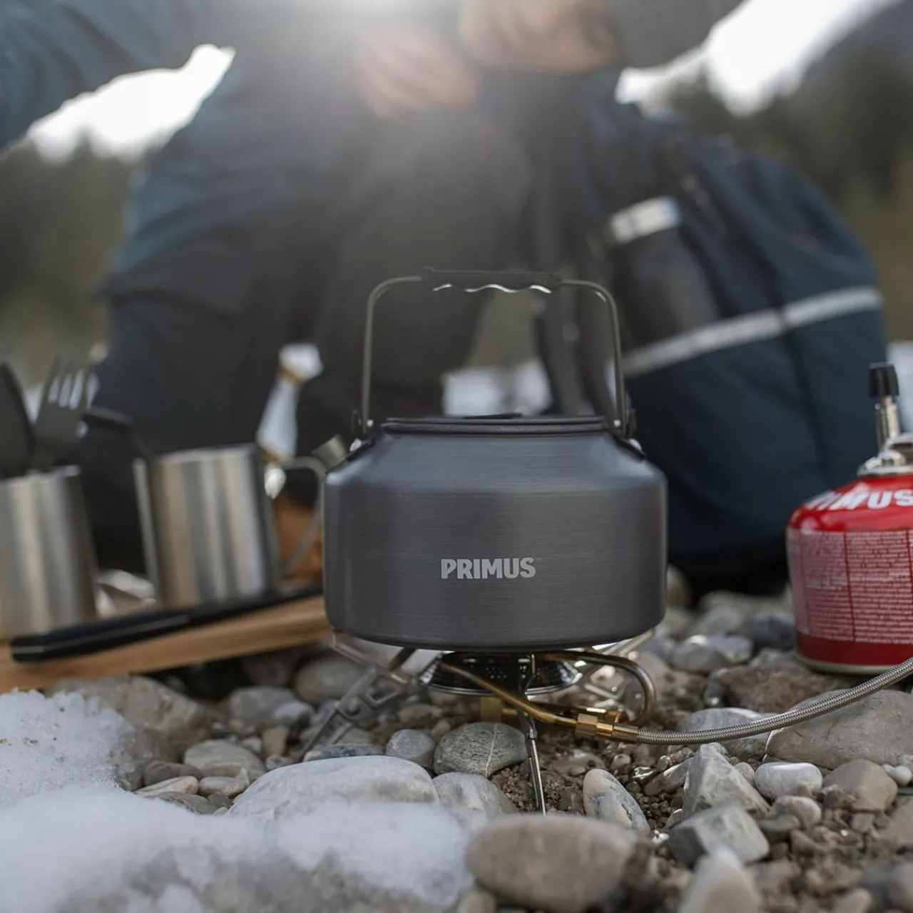 A small and compact kettle for cups of tea and coffee out on the trail