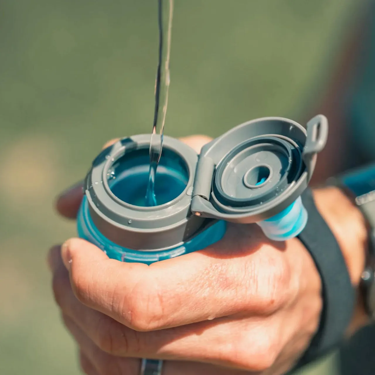 Weighing just 63g and boasting a capacity of 350ml, this flask strikes an optimal balance between lightweight design and sufficient hydration capacity. Its soft material not only conforms to your hand for a snug fit but also packs away neatly when empty, minimising bulk.