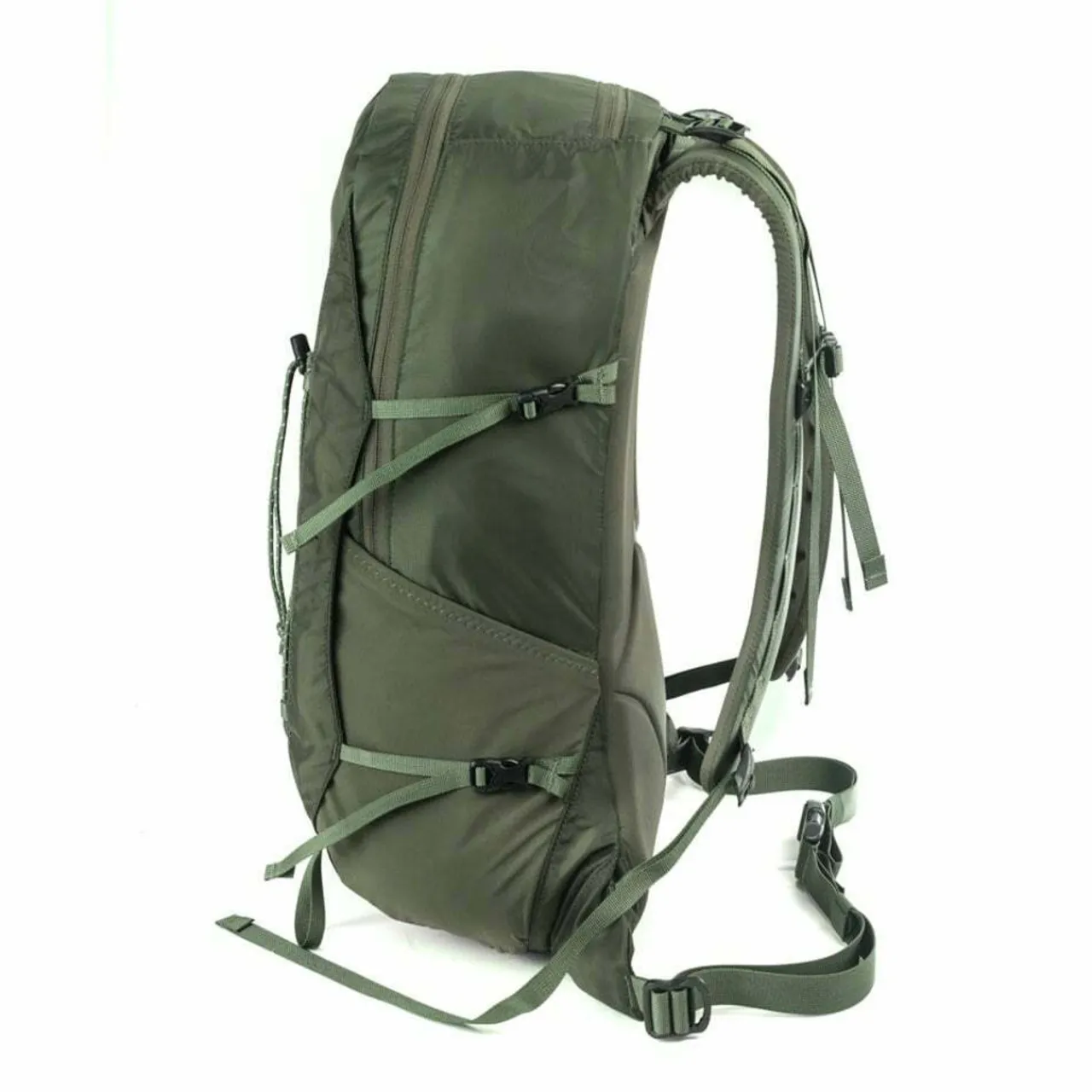 This pack is built for the hiking trails. We’ve boiled down our ultralight multi-day pack knowledge into a day hiking pack. Utilizing the iconic Granite Gear arch system to anchor your pack down, the weight is distributed to a thin frame sheet and down to the hip-hugging webbing waist belt. It’s a 22-Liter pack, ready to carry all you’d need for the day- and then some, with added volume in the external stretch woven side pockets and large front pocket with an overlapping cord system.