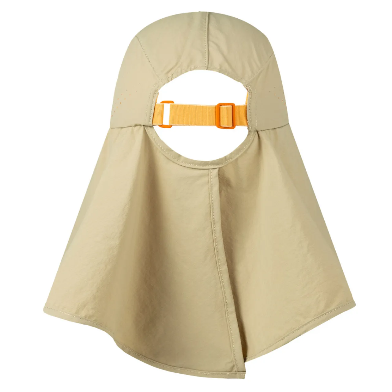 The Buff Desert Cap is one of the most functional sun hats for hot, exposed trails. The multi-position cape provides excellent protection for the neck and ears, and I appreciate the thought that went into airflow. Overlapping panels and well-placed vents help prevent it from becoming stifling. The fit is secure thanks to the elastic closure, and there’s even a built-in loop to keep your sunglasses in place.