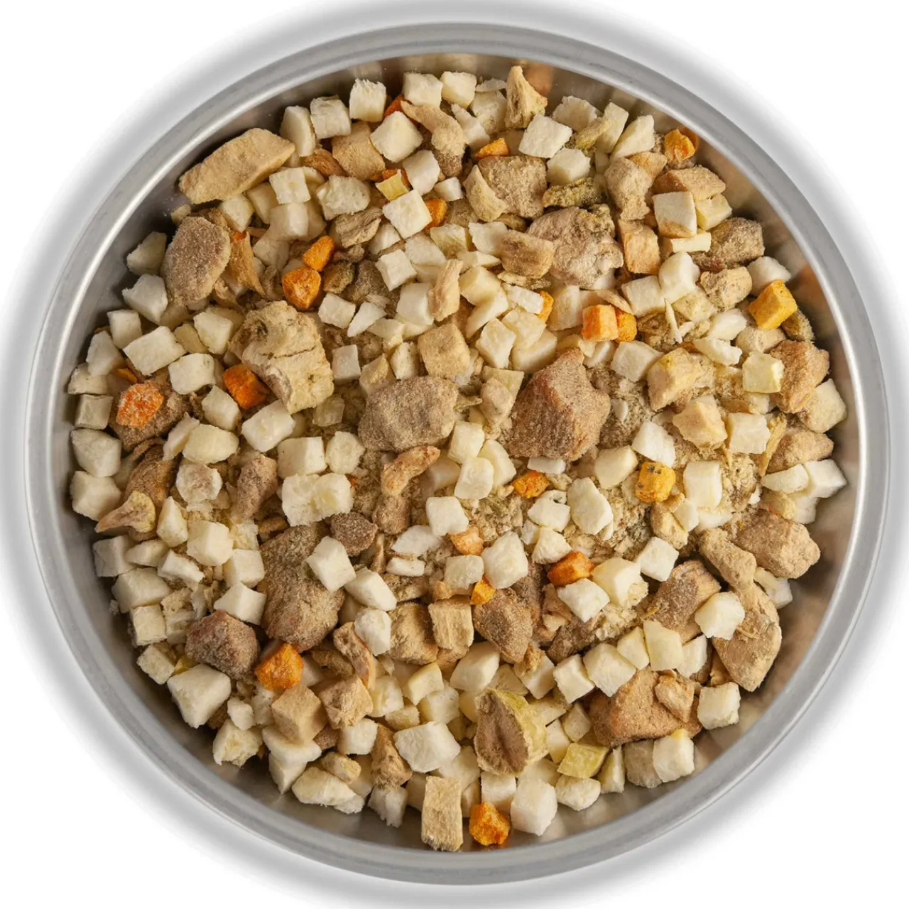 - vegetables (potatoes, carrot, parsley root, leek, onion, broccoli, cauliflower) 61 %, pork loin (cubes) 33 %, wheat flour, canola oil, salt, spices (contains celery), dill 0,3 %.