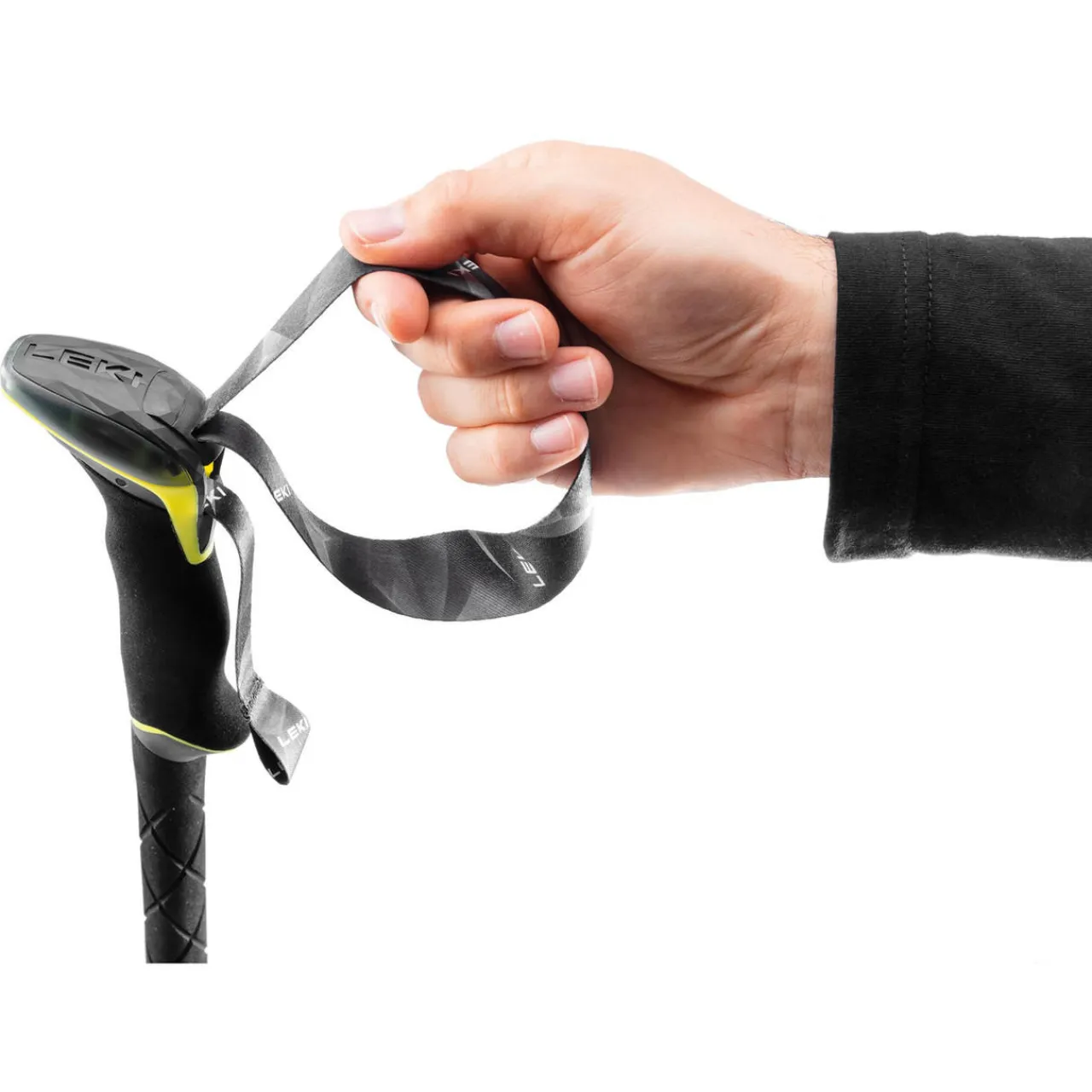 The LEKI Sherpa FX. One Carbon Mountaineering Poles are reliable for challenging terrain. They combine lightweight construction and ergonomic design for comfort and control. The robust aluminum base and folding design make them packable and versatile for trekking and hiking.