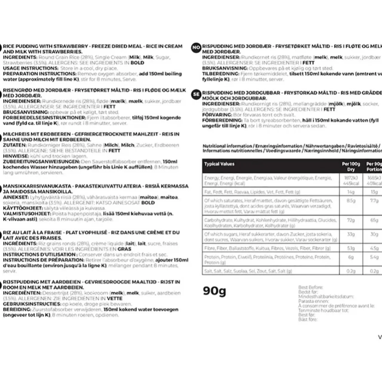 - Long Grain White Rice (28%), Single Cream (Milk)(26%), Whole Milk (22%), Sugar, Ground Rice, Freeze Dried Diced Strawberry (1%).