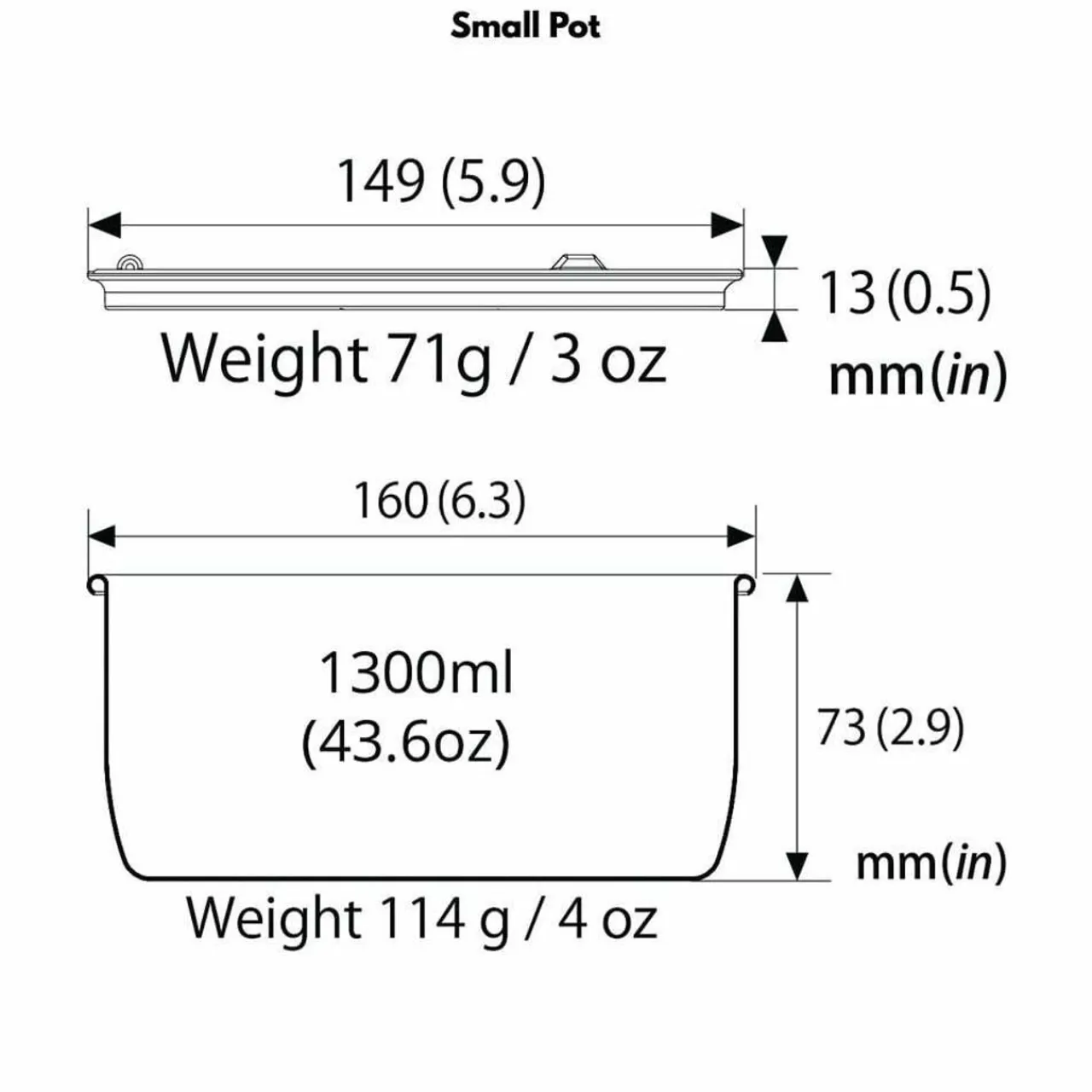 - Large/Small Pots: 130g / 102g