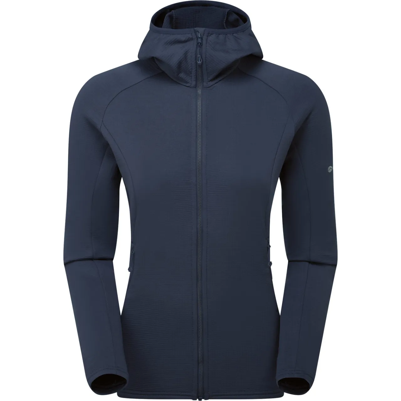 The Montane Women’s Protium Hooded Fleece Jacket has a high warmth-to-weight ratio and excellent breathability. This bestseller is now made with streamlined seams, from more than 90% recycled material. The high-performance THERMO GRID FLEECE adapts to the conditions to keep your core warm and your skin dry, and features a hood that can fit under a helmet.