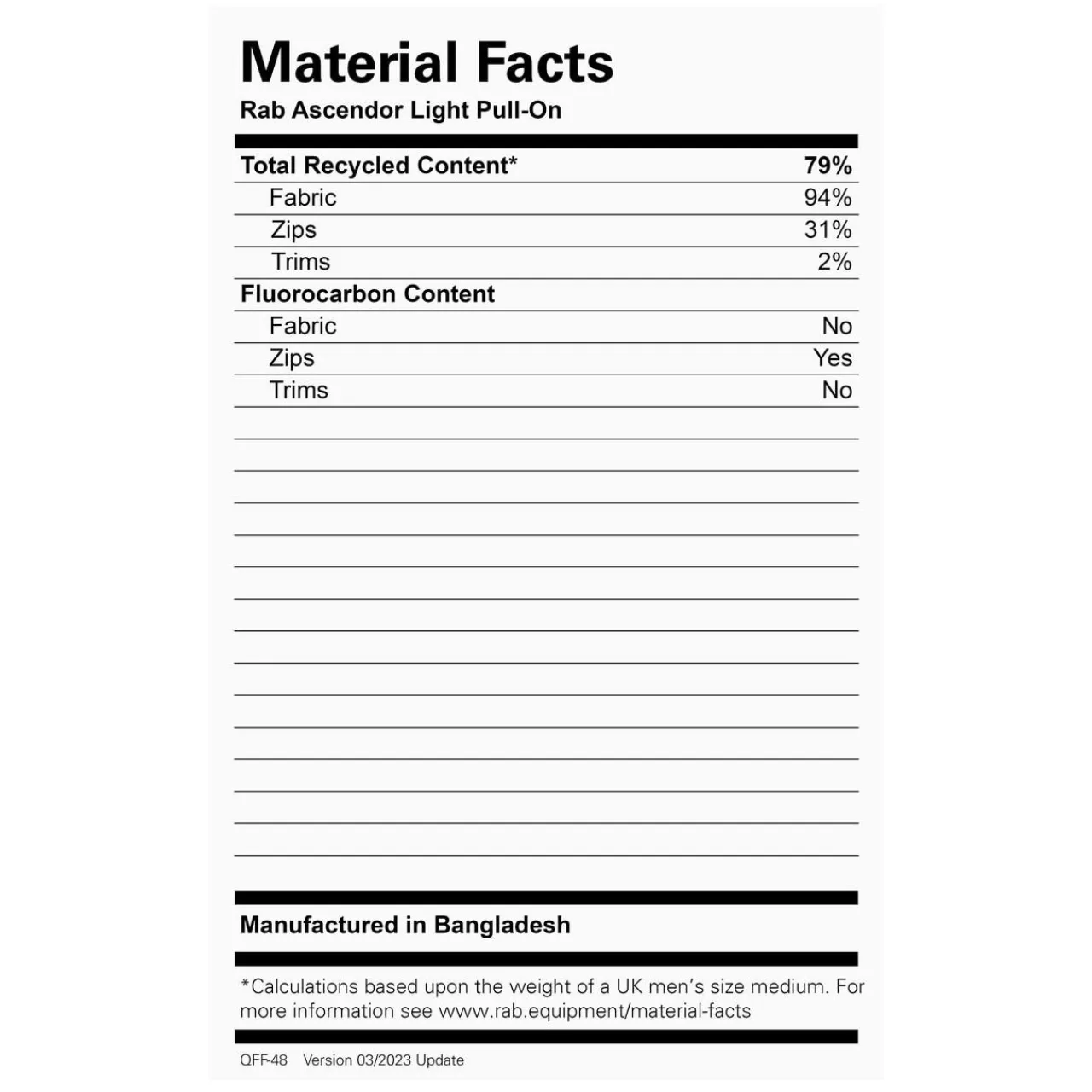 The Ascendor Light Pull-On is a close-fitting garment that moves and stretches with you, so they are suitable for scrambling or any form or rock climbing. The cuffs and the hem are both elasticated to keep the heat in when needed, but if it’s starting to heat up, the front zip can quickly ventilate heat.