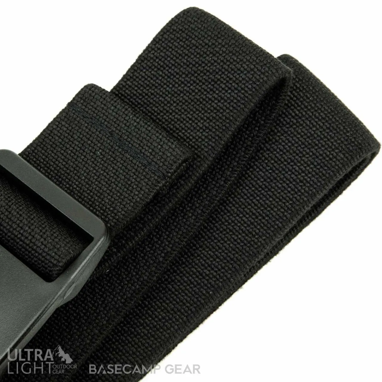 Comfortable elastic belt. Easily adjusted plastic buckle with a flat profile that sits well under a backpack’s hipbelt.