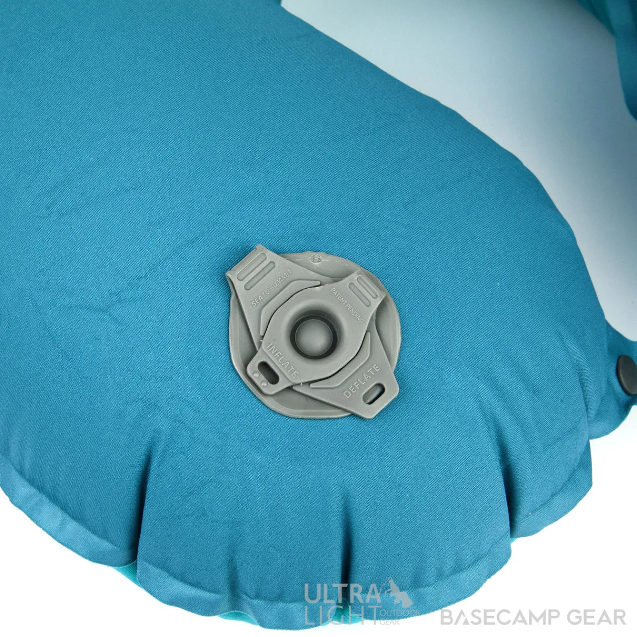 The Aeros Ultralight Traveller Pillow includes an adjustable neck closure to support the entire circumference of your neck, providing a more comfrotable sleep. The closure is made from welded 20D knit fabric which offers stretch and softenss without requiring bulky edge binding. Three press studs are applied to he fabric offering two lengths to choose from. The Aeros Ultralight Traveller Pillow closure runs directly from the perimeter weld.