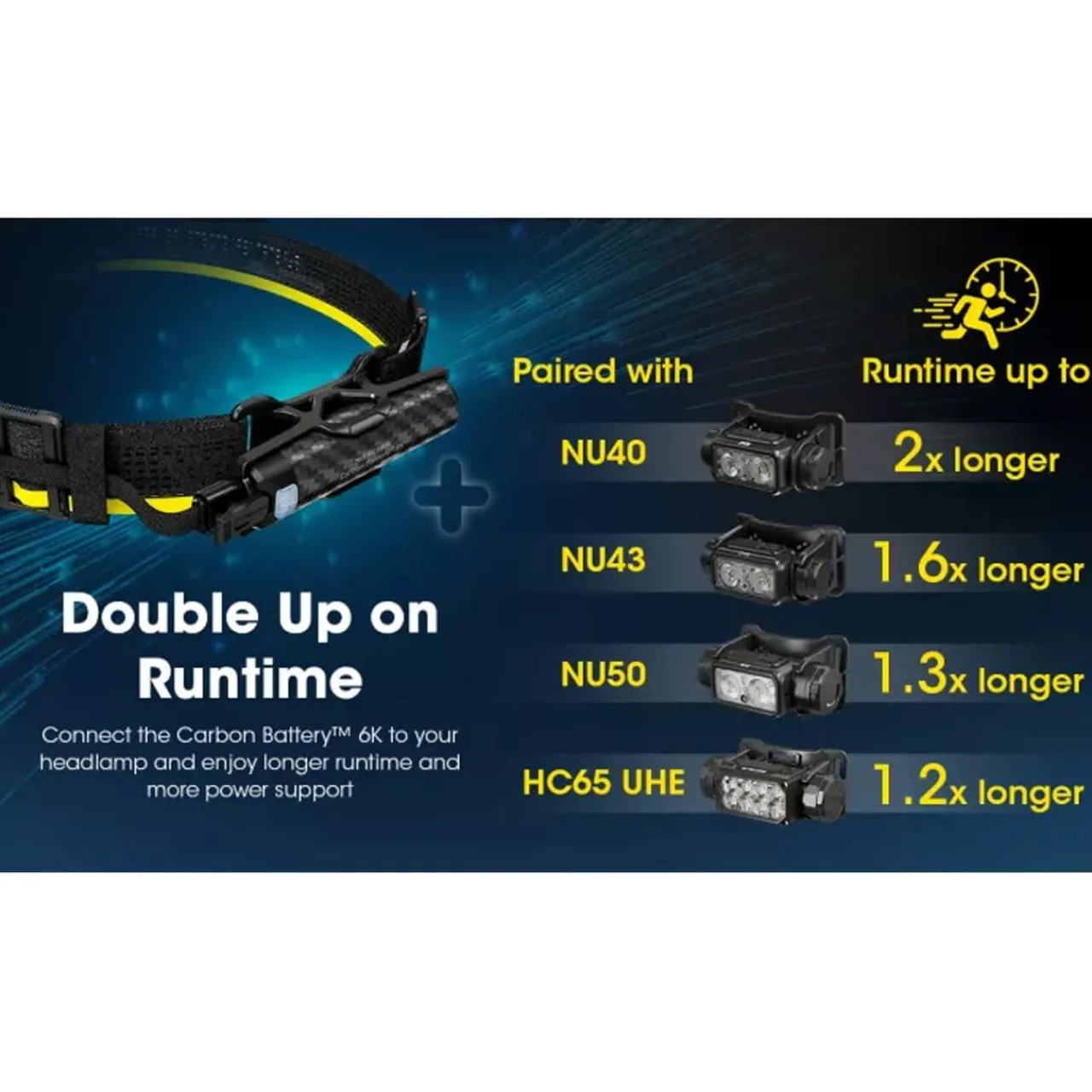 The Carbon Battery 6K is ideal for everyday carry. Offering enhanced durability, the cell has an IP68 waterproof rating and is resistant to impacts up to 1 meter.