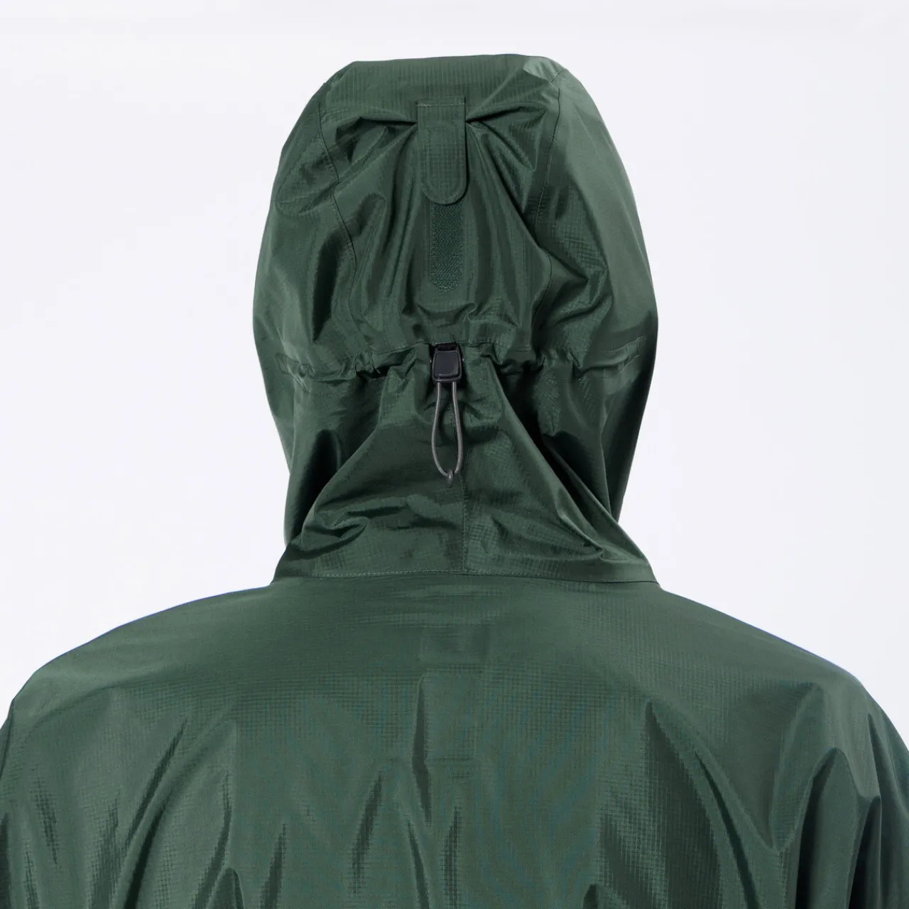 - Roll-up hood with a hook-and-loop tab fastens the hood in place, preventing it from flapping
