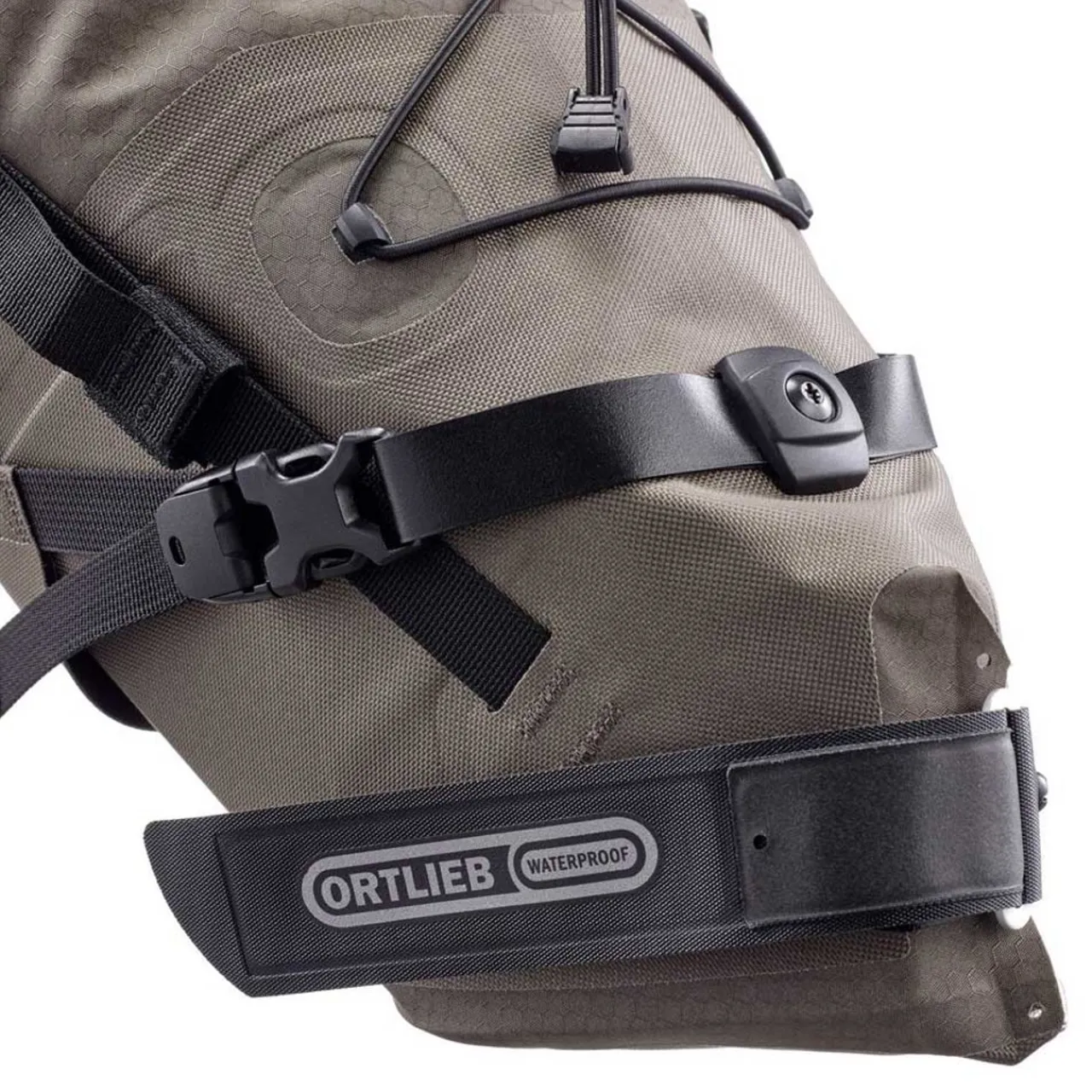 The ORTLIEB Seat-Pack 11L is compact and spacious at the same time. Offering a payload of 11 liters, the waterproof seat bag offers a lot of stowage space for sizeable items that are not so heavy such as clothing and personal care items. The inside and bottom of the bag are stiffened, which ensures stability even in bumpy terrain. Thanks to the roll closure, adjustable straps and an additional compression valve, you can reduce your loaded Seat-Pack to an extremely compact size.