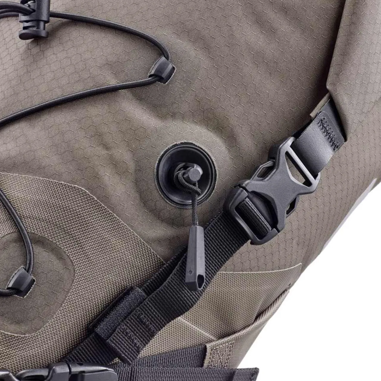 The Seat Pack comes in two sizes with this version being medium. The adjustment straps mean that it is capable of fitting in a significant amount of kit while being flexible enough to compress down if you’re not using the full capacity. This is a great option if you don’t need that much space on shorter trips or you want to be able to use it more often than is practical with the large version. However, this is an excellent piece of kit that provides plenty of space and does not limit your adventuring.