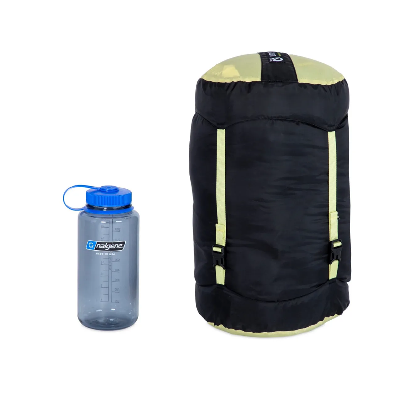 - Hood and footbox are reinforced with recyclable material treated with PFAS-free waterproofing to prevent tent condensation from soaking into the bag`s fabric.