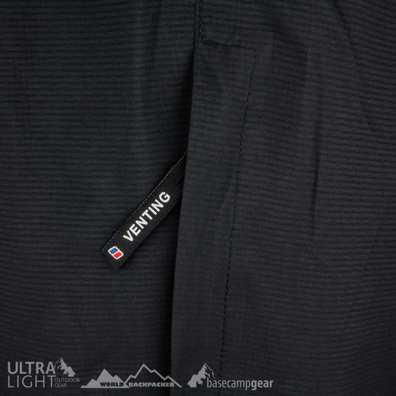 Women’s Paclite Gore-Tex Overtrousers from Berghaus provide very high levels of waterproof protection. The 3/4 length zips can be opened for venting when in use, you can open them up all the way down the pants and use the press stud at the ankle and halfway up to keep your legs still protected but very vented. The pants use a water resistant zipper and a storm flap over the top of that, if you’re battening down the hatches in these overtrousers there won’t be any ingress of water through the zip, that’s for sure.