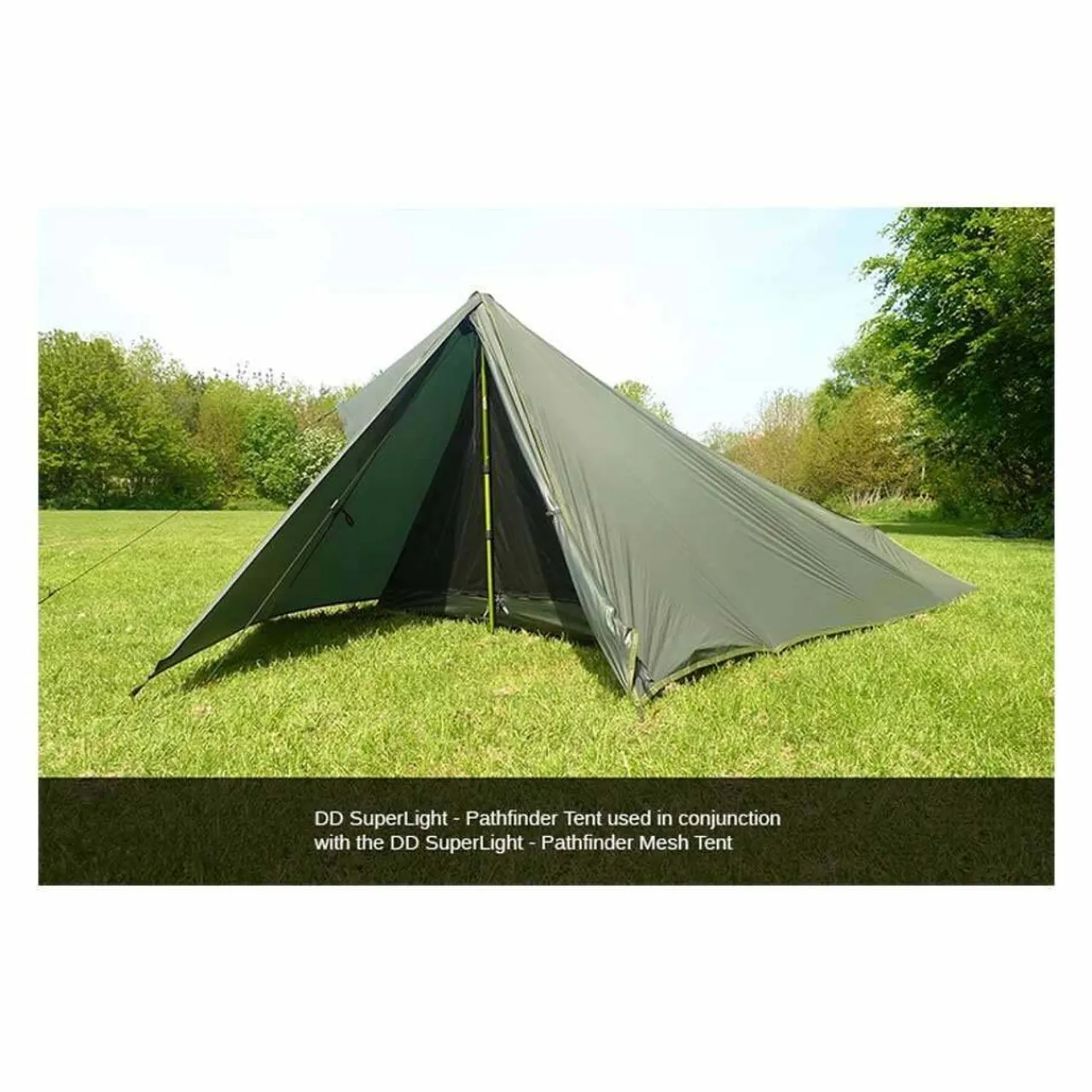 The DD SuperLight Pathfinder Tent can be used independently as a a basic tarp style shelter or combined with the Superlight Pathfinder Mesh Tent for a more traditional 2 layer tent.