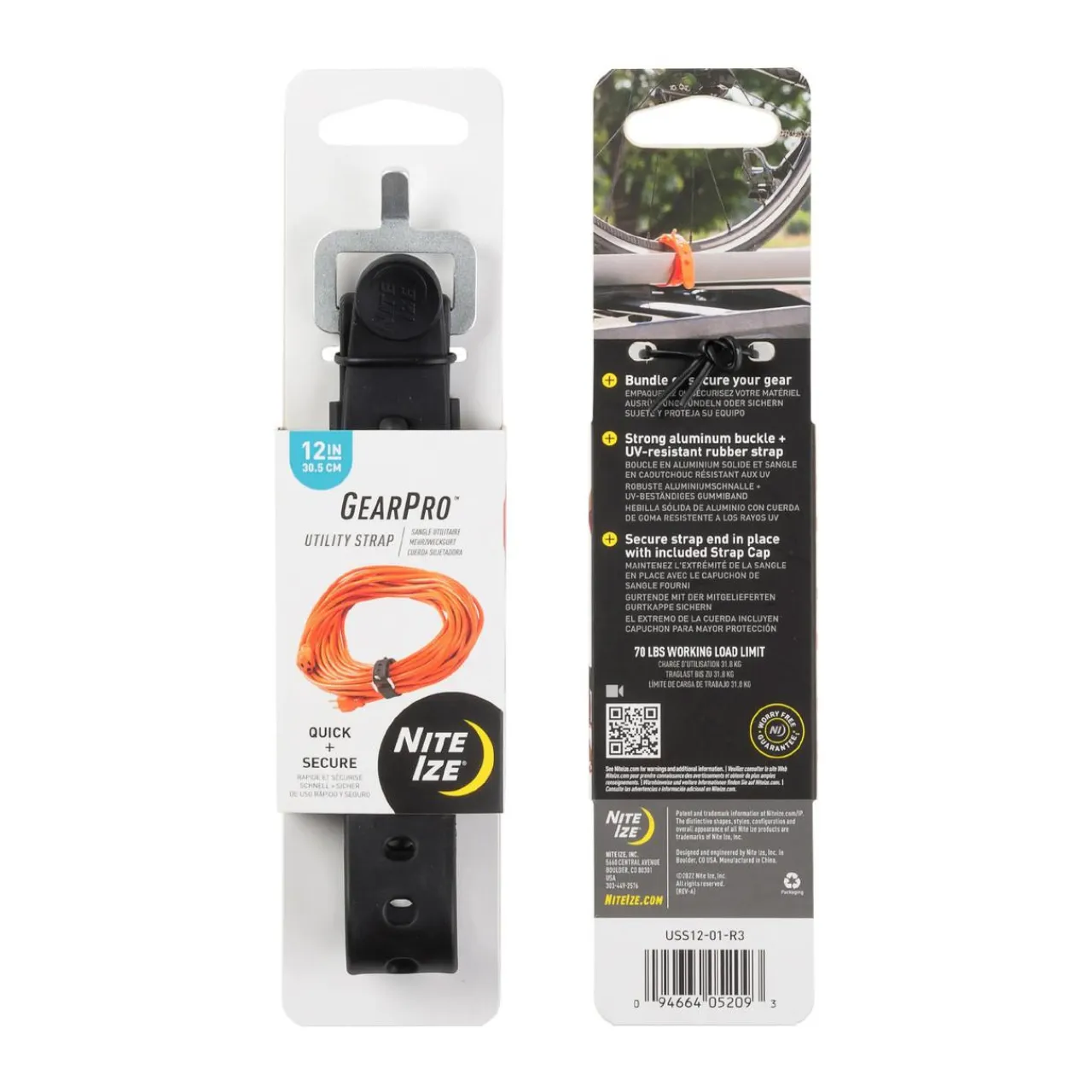 The Nite lze GearPro Utility Strap is a highly versatile tool for securing, compressing and bundling gear. With a strong aluminium buckle and stretchy, UV-resistant rubber, it handles loads between 70 and 80 pounds. Available in three sizes—12″, 18″, and 24″—it caters to various needs.
