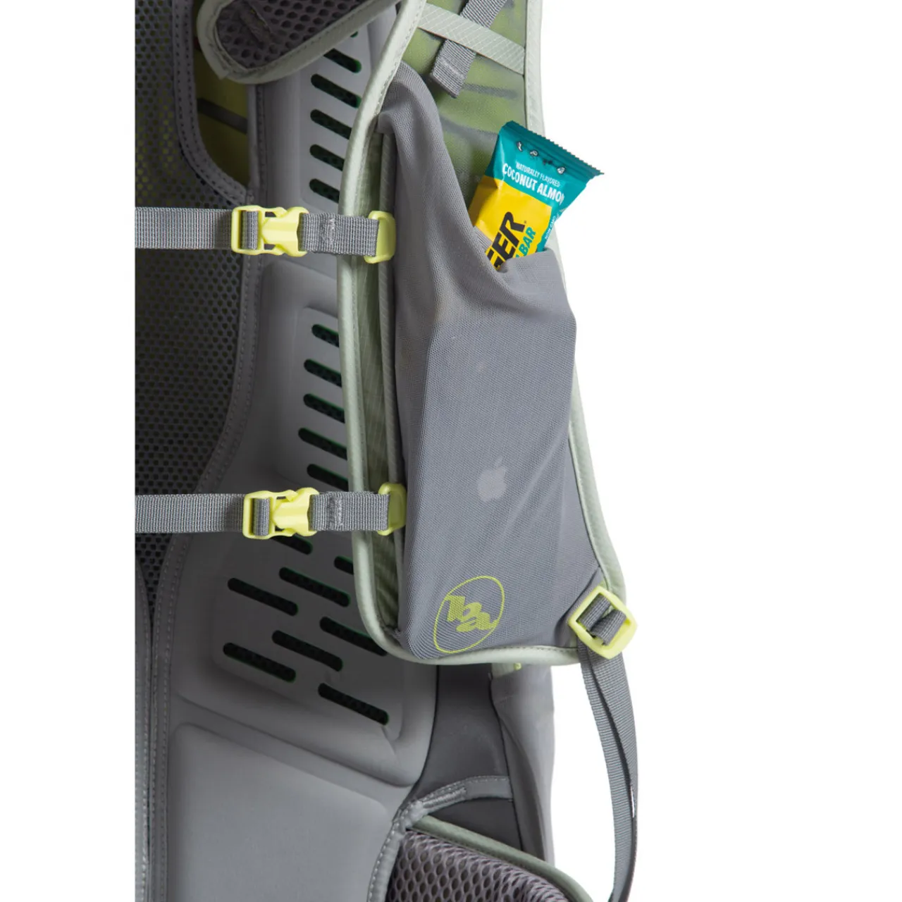 - Oversized stretch-mesh quick stash pockets on front, side, and on chest straps for easy drop-in storage