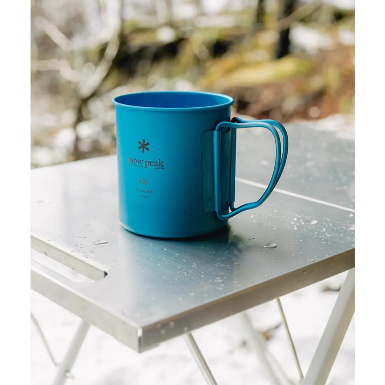 The Snow Peak 2024 Titanium Single Wall 450 Coloured Mug combines style and functionality. Made from anodised titanium, it is lightweight (61 grams) yet durable and heat-resistant, allowing for direct flame use. However, direct flame use may affect the vibrant anodised finish.