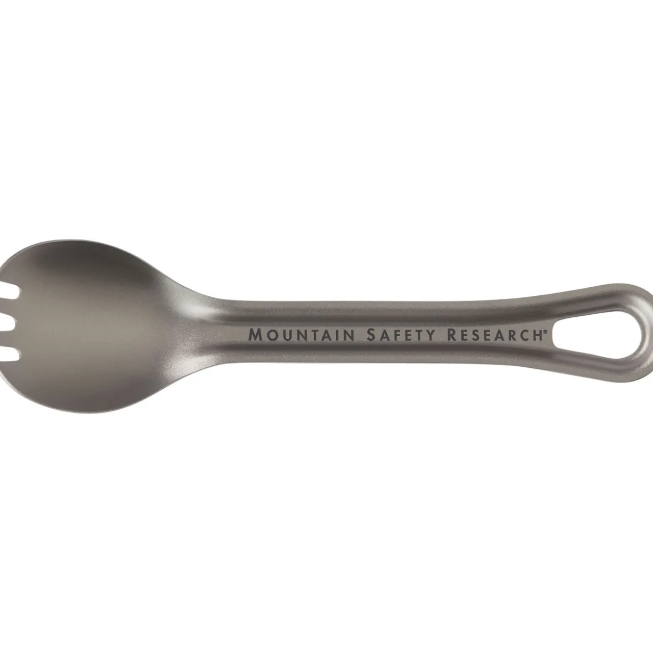 MSR Titanium Spork is lightweight, tough, easy to clean, and has a compact design that fits most cook kits. It’s not ideal for dehydrated bag meals.