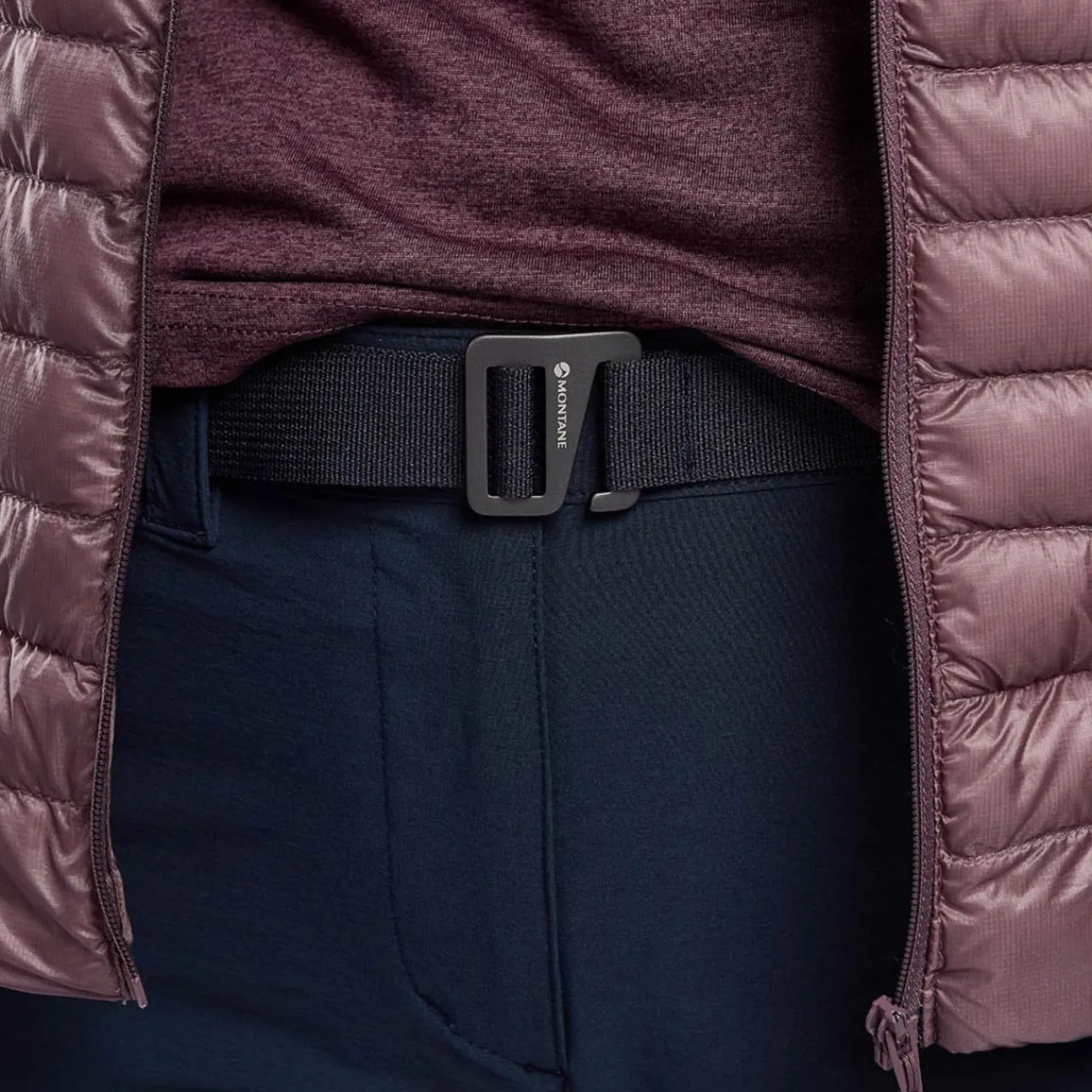 The Terra Lite Pants come equipped with a convenient webbing belt, which can be easily removed if not needed or replaced with a preferred alternative. The belt features a simple, low-profile hook closure for secure fastening.