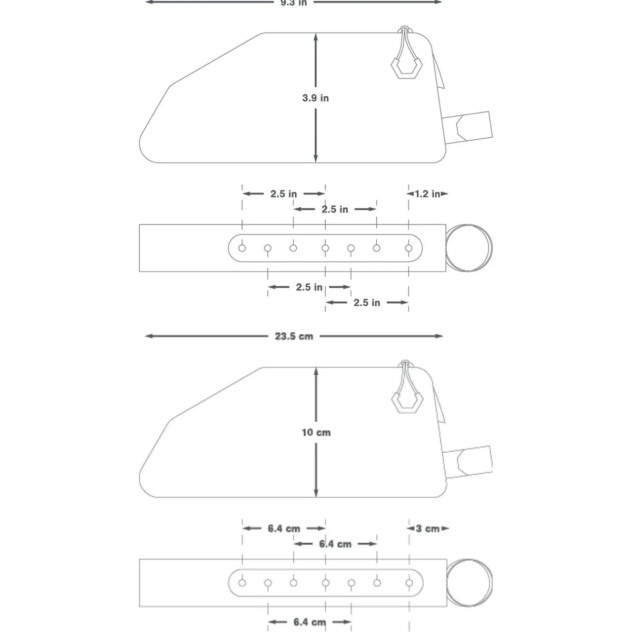 Apidura Expedition bolt-on Top Tube pack 1L is a lightweight, waterproof and durable pack that bolts directly onto the top tube. It is sturdy and does not flop around whilst riding, even on uneven surfaces. The sleek shape keeps it narrow and doesn’t interfere with knees at the top of the pedal stroke. Accessing the pack is via the long zip than runs along the top edge, and the zip pull is easy to use even with gloves on. It is a perfect size for putting small items for easy access and electricals can be wired through the covered slot on the front edge.
