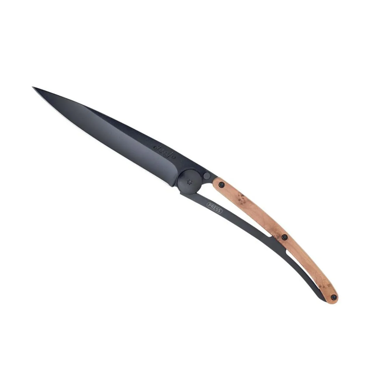 The Deejo Wood 37g knife is an ultra lightweight pocket knife made from stainless steel and a choice of wood. The Black gives a stylish update for this versatile design ready for any outdoor adventure.