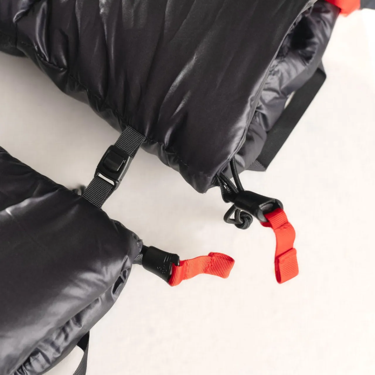 Sherpa Mitts are high-altitude down mittens designed for cold weather and extreme outdoor conditions. They are filled with RDS certified 900FP polish white goose down, which provides excellent insulation and warmth. The mittens feature a number of practical design elements to enhance their performance and convenience, including a nose wipe, a carabiner tightening loop, an automatic snow protection system, and a cuff tightening system. These features make the Sherpa Mitts well-suited for activities such as mountaineering, ice climbing, and backcountry skiing, where protection from the cold is of paramount importance.