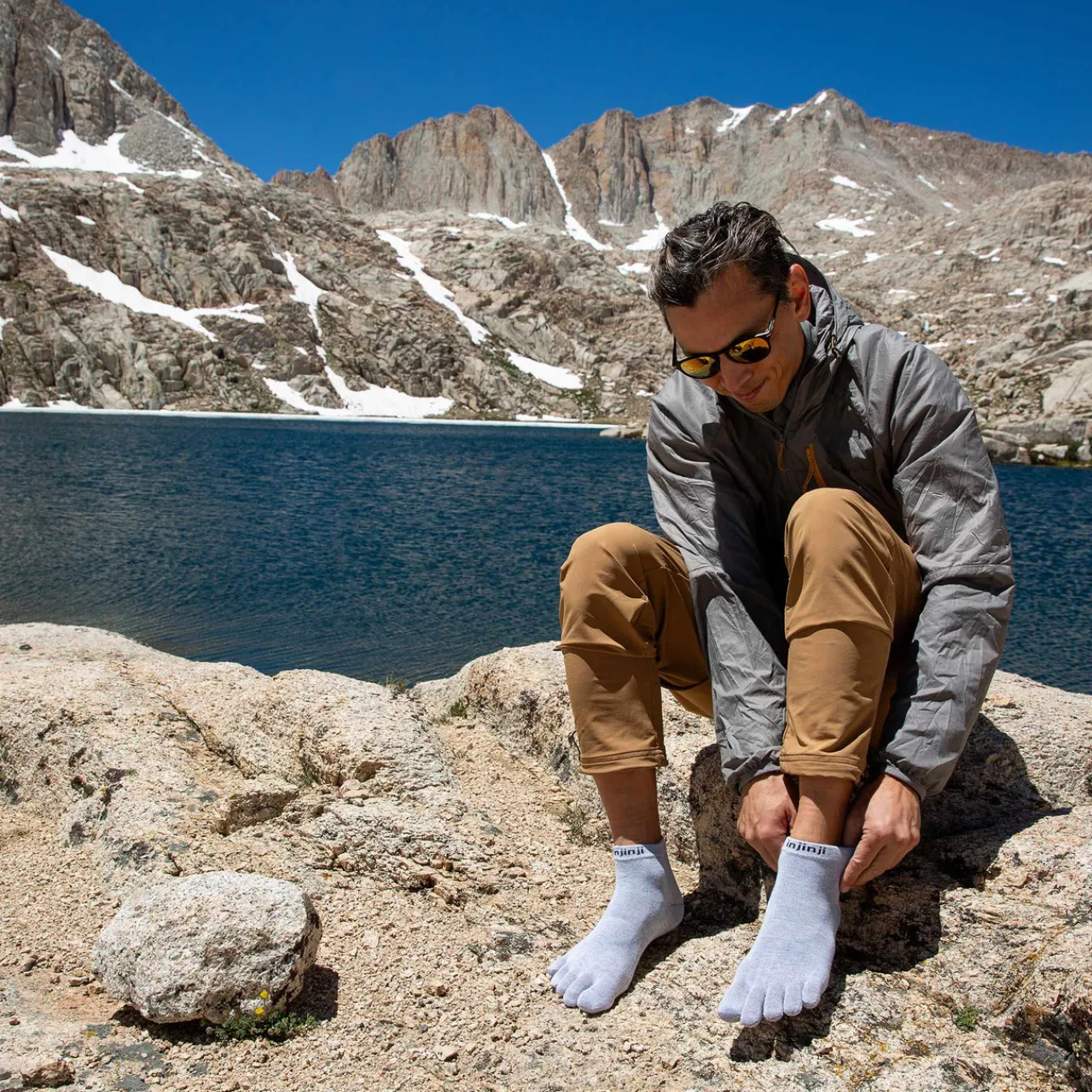They’re fine for short, easy-going days, though I wouldn’t count on them for durability if worn solo over rough terrain. Fit is snug but forgiving, and the 200-needle knit makes them feel smoother and more refined than earlier Injinji models I’ve used.