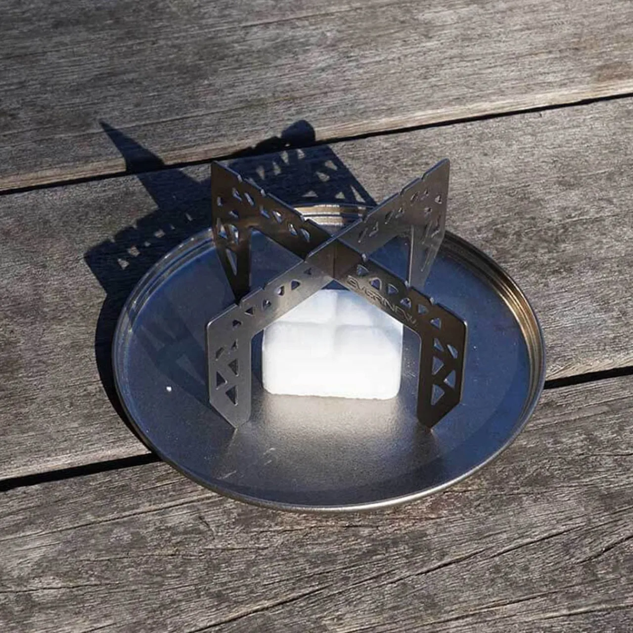 EVERNEW Cross Stand 2 fits perfectly on EVERNEW Alcohol Stove and gives an optimal height to it for better combustion efficiency.